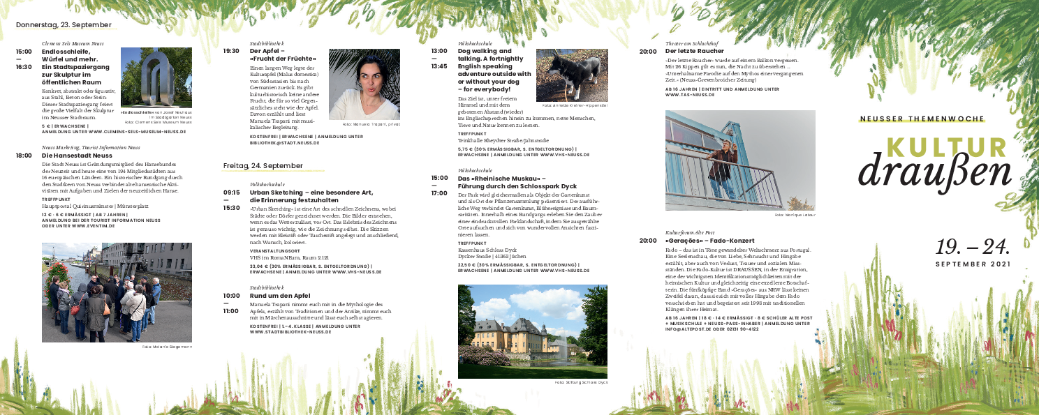 Kultur draußen. Themenwoche der Kultur- und Bildungsinstitute der Stadt Neuss