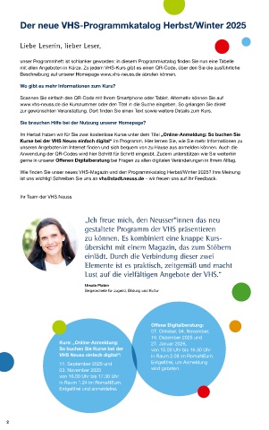 mit allen Angeboten in Kürze. Zu jedem VHS-Kurs gibt es einen QR-Code, über den Sie die ausführliche