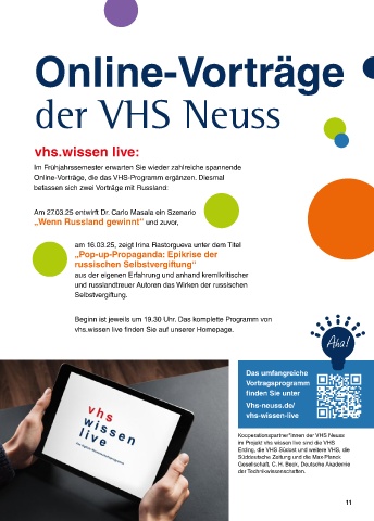 Online-Vorträge, die das VHS-Programm ergänzen. Diesmal