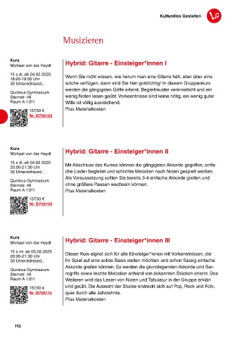 Kurs Hybrid: Gitarre - Einsteiger*innen III