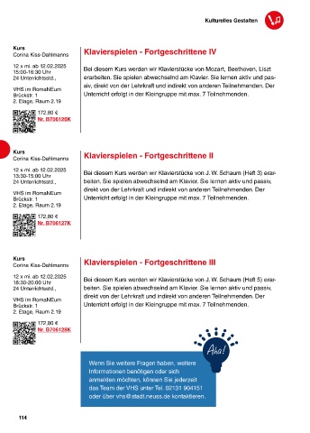 12 x mi. ab 12.02.2025 Bei diesem Kurs werden wir Klavierstücke von J. W. Schaum (Heft 5) erar-