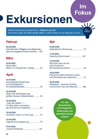 Bei den Exkursionen gilt jetzt immer „Treffpunkt vor Ort“