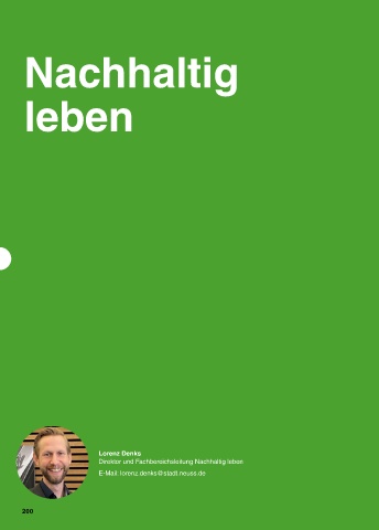 Nachhaltig leben Lorenz Denks Direktor und Fachbereichsleitung Nachhaltig leben E-Mail: lorenz.denks@stadt.neuss.de 200