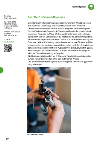 VHS im RomaNEum Fahrrad-Technik und -Reparatur in Theorie und Praxis. Sie erhalten Anlei-