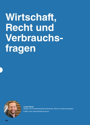 Wirtschaft, Recht und Verbrauchs- fragen Lorenz Denks Direktor und Fachbereichsleitung Wirtschaft, Recht und Verbrauchsfragen E-Mail: lorenz.denks@stadt.neuss.de 220