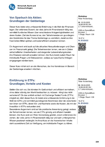 lagen. Der erfahrene Dozent, der viele Jahre im Finanzbereich tätig war, VHS im RomaNEum