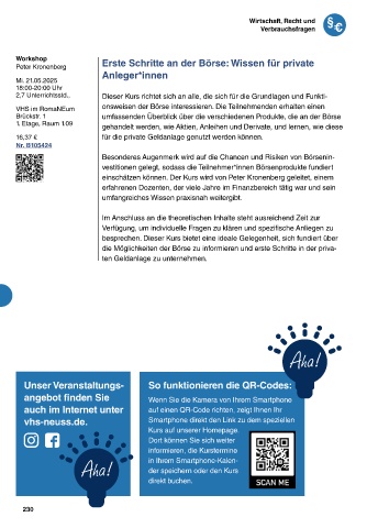 VHS im RomaNEum onsweisen der Börse interessieren. Die Teilnehmenden erhalten einen
