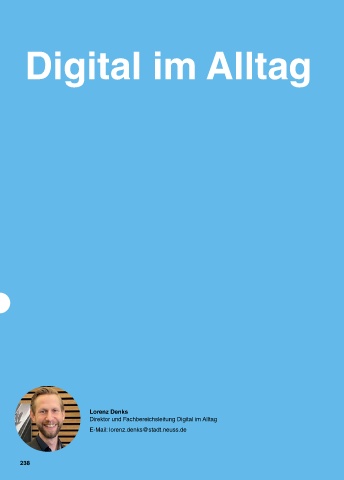 Digital im Alltag Lorenz Denks Direktor und Fachbereichsleitung Digital im Alltag E-Mail: lorenz.denks@stadt.neuss.de 238