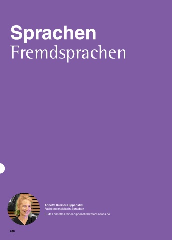 Sprachen Fremdsprachen Annette Kreiner-Hippenstiel Fachbereichsleiterin Sprachen E-Mail annette.kreiner-hippenstiel@stadt.neuss.de 286