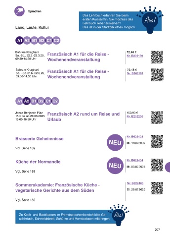 Zu Koch- und Backkursen im Fremdsprachenbereich bitte Ge-