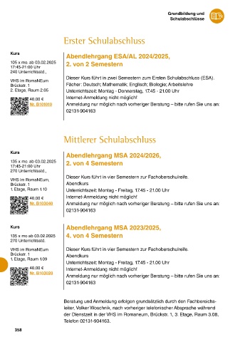 VHS im RomaNEum Dieser Kurs führt in vier Semestern zur Fachoberschulreife.