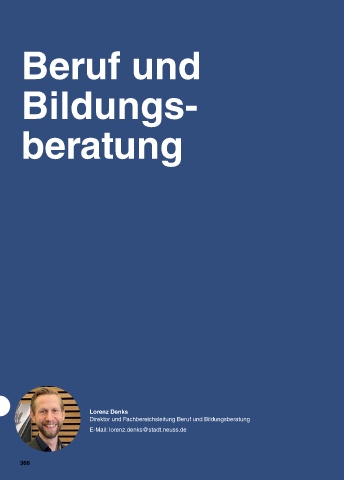 Beruf und Bildungs- beratung Lorenz Denks Direktor und Fachbereichsleitung Beruf und Bildungsberatung E-Mail: lorenz.denks@stadt.neuss.de 366