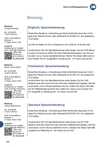 Sa. 18.01.2025 Kostenfreie Beratung - Anmeldung per Mail (vhs@stadt.neuss.de) mit An-