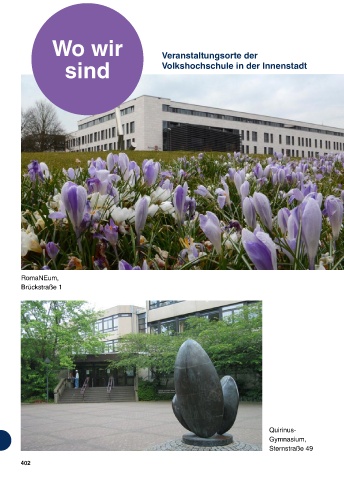 Wo wir Veranstaltungsorte der sind Volkshochschule in der Innenstadt RomaNEum, Brückstraße 1 Quirinus- Gymnasium, Sternstraße 49 402 402