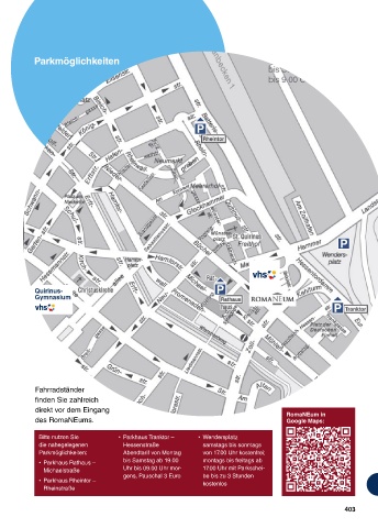 Parkmöglichkeiten: Abendtarif von Montag von 17.00 Uhr kostenfrei;