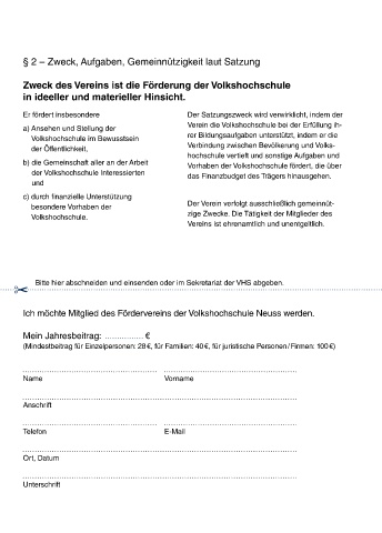 Ich möchte Mitglied des Fördervereins der Volkshochschule Neuss werden.
