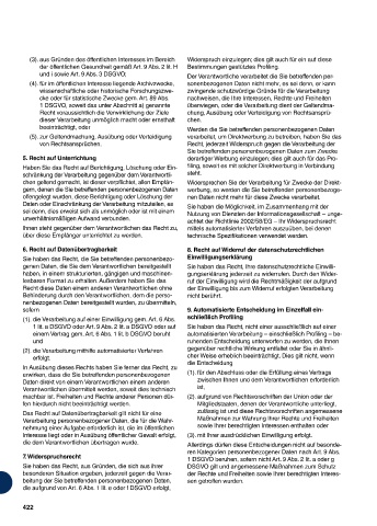 und i sowie Art. 9 Abs. 3 DSGVO; Der Verantwortliche verarbeitet die Sie betreffenden per-