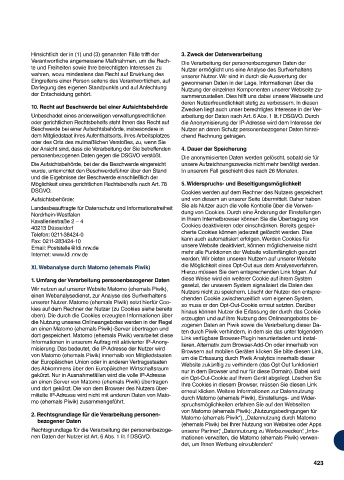 unserer Nutzer. Matomo (ehemals Piwik) setzt hierfür Coo- so muss er den Opt-Out-Cookie erneut setzten. Darüber