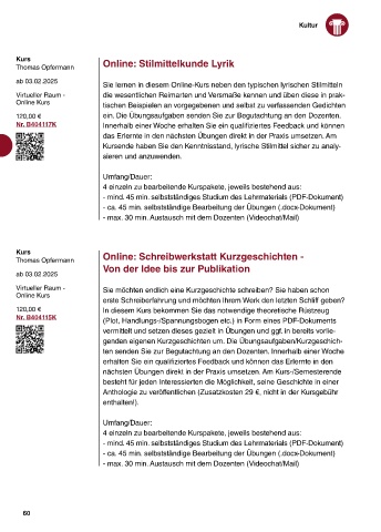 Online Kurs tischen Beispielen an vorgegebenen und selbst zu verfassenden Gedichten