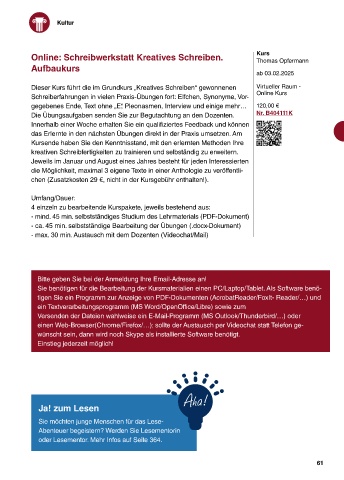 Dieser Kurs führt die im Grundkurs „Kreatives Schreiben“ gewonnenen Virtueller Raum -